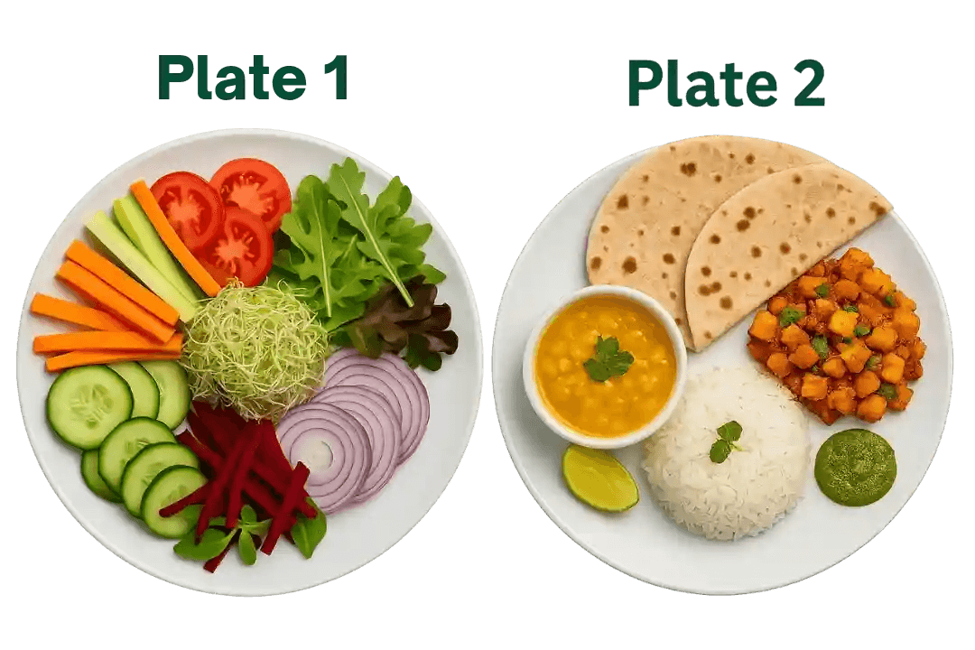 Plate 1: Fresh raw vegetables or salad