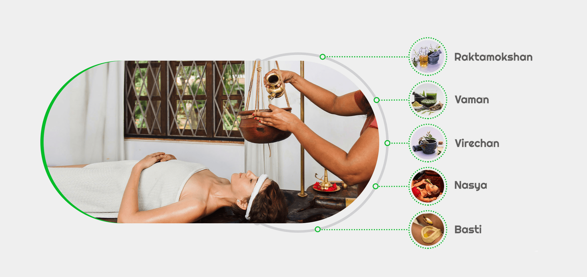 Panchakarma therapy is an Ayurvedic detox that removes toxins from the body. It improves metabolism, digestion, and energy levels. This 5 step detox therapy focuses on the root cause and ensures long-lasting results. The steps included are: