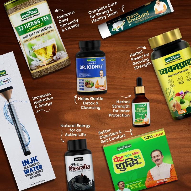 One such solution is the INJK Total Wellness Combo, a specially designed health kit inspired by the principles of Ayurveda and natural healing. Created under the guidance of Acharya Manish Ji, this combo focuses on improving overall health through detoxification, better digestion, and balanced hydration.